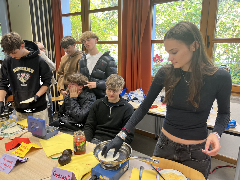 Für das leibliche Wohl sorgte ein Verkauf von mexikanischen Spezialitäten (Quesadillas), der großen Anklang fand. Die Beteiligung der Schülerschaft war beeindruckend: Zahlreiche Helferinnen und Helfer trugen dazu bei, dass dieser Tag nicht nur informativ, sondern auch lebendig und bunt wurde.