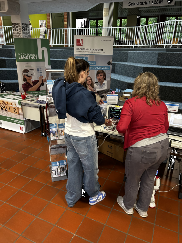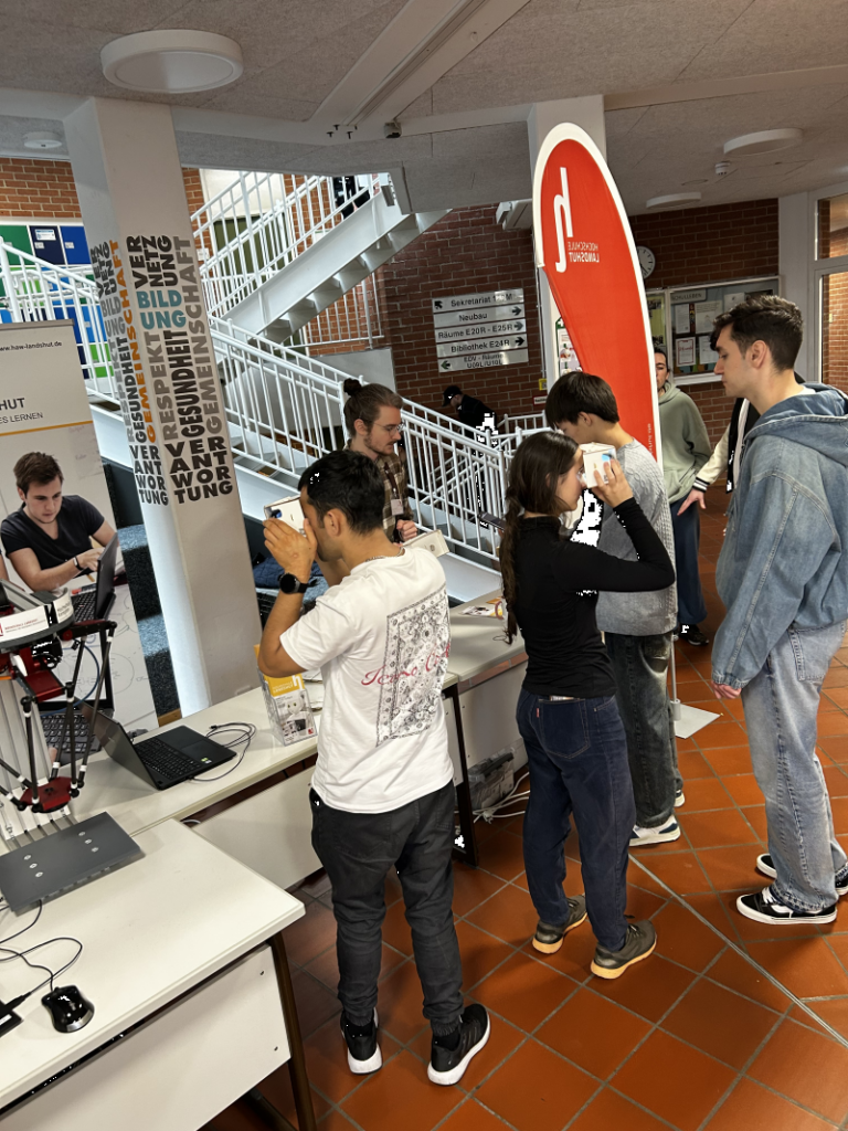 Die Aula der FOSBOS Freising verwandelte sich für einen Tag in ein interaktives Techniklabor: Ein selbstgebauter Roboter, VR-Brillen, ein 3D-Drucker, ein Patientenmonitor und sogar ein voll ausgestatteter BMW 740 iL zogen die Aufmerksamkeit der Schülerinnen und Schüler auf sich. Die Fakultäten Maschinen- und Bauwesen, Elektrotechnik und Wirtschaftsingenieurwesen, Gesundheit Kommunikation und Mensch-Technik-Interaktion sowie Informatik der Hochschule Landshut präsentierten ihre Fachbereiche mit anschaulichen Demoobjekten und spannenden Mitmachstationen.