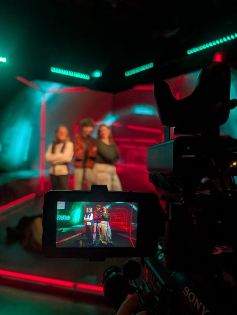 Nach einem Einführungsgespräch zum Thema „Demokratie und Du“ erhielt die Klasse einen Einblick in die Arbeit eines Geräuschemachers. Die Ausführungen gestalteten sich zwar teilweise sehr theoretisch, dennoch bot die Live-Vertonung einer Tatort-Szene einen anschaulichen und beeindruckenden Praxisbezug. Eine Pause bei sonnigem Wetter auf der Dachterrasse mit bereitgestellten Brezen und Getränken sorgte anschließend für Erholung. Hier wurden fast alle Jugendlichen für das TikTok-Format Point of You interviewt und äußerten sich zu Themen wie KI-Videos, Zukunftsängsten und Bildschirmzeit. Danach folgte der Besuch des Formats PULS Startrampe. Besonders bemerkenswert war hier die Diskussionsrunde über Musikentdeckung, in der ein Schüler der Klasse mit außergewöhnlichem Fachwissen überraschen konnte. Abschließend durfte die Gruppe das Studio besichtigen und Einblicke in Kamera- und Lichttechnik gewinnen.